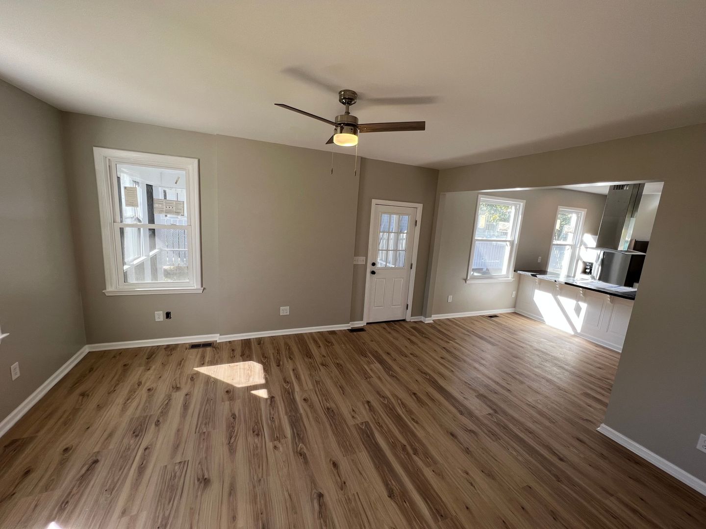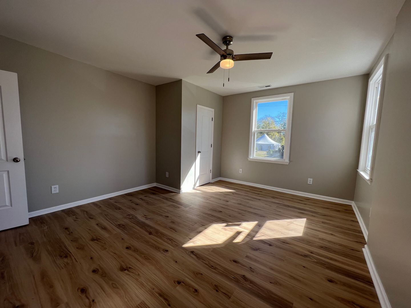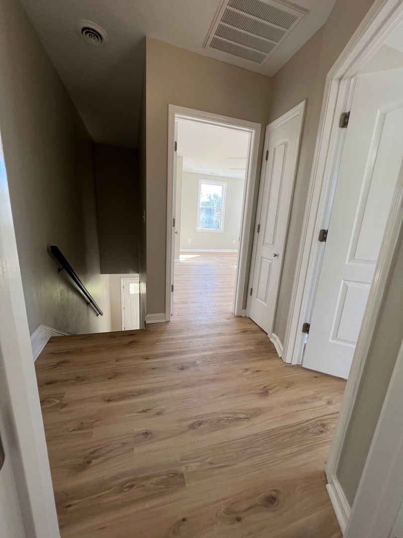 This is a 2 bedroom, 2 bath, two story unit as part of a duplex. Bedrooms are upstairs. This unit has a screened-in porch, LVP flooring, granite countertops, new paint, ceiling fans throughout, including on the porch. Stainless steel appliances in the kitchen including dishwasher, refrigerator, overhead range fan, double sink and stove. Lawncare included in the rent.