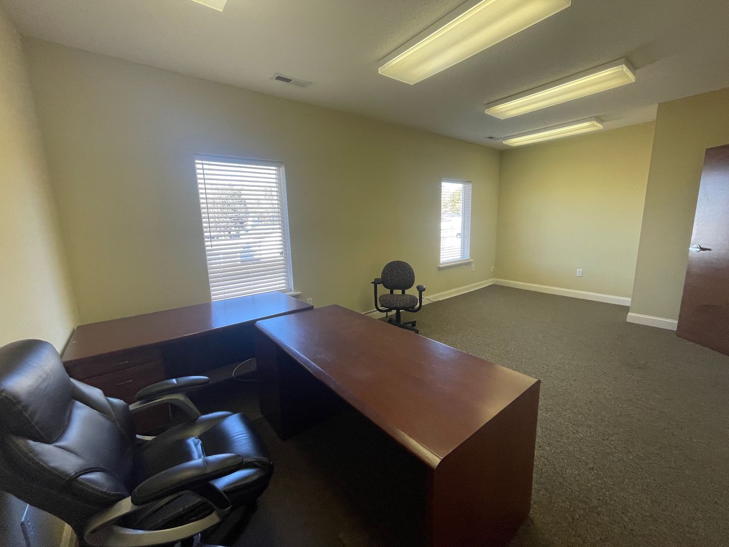Prime location in the heart of Dunn! Professional setting. There are 6 offices in this suite. Two bathrooms, one on each story. Plenty of parking for your clients. Offices are nice and spacious, most are large enough for 2 desks. Confence room or additional office, break room space!